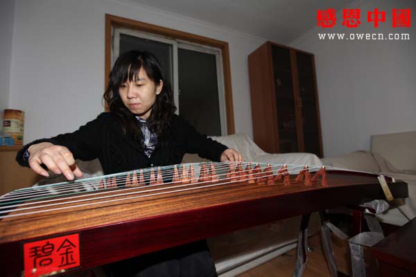 “记得我上小学的时候非常喜欢电子琴,但爸爸妈妈没有钱买给我。前年我下狠心花了一千多块钱买了这台古筝,也算是了却了我小时候的一个愿望。现在我每次搬家,不管多远,我都会把古筝背上。”回到出租房的任艳丽来到心爱的古筝旁练习。